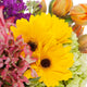 A bright a happy mix of roses, and gerbera daisies with seasonal flowers designed in a petite vase.