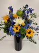 We hand-design each arrangement as close to the picture as possible. Similar substitutions may be made for flowers or container, depending on availability.