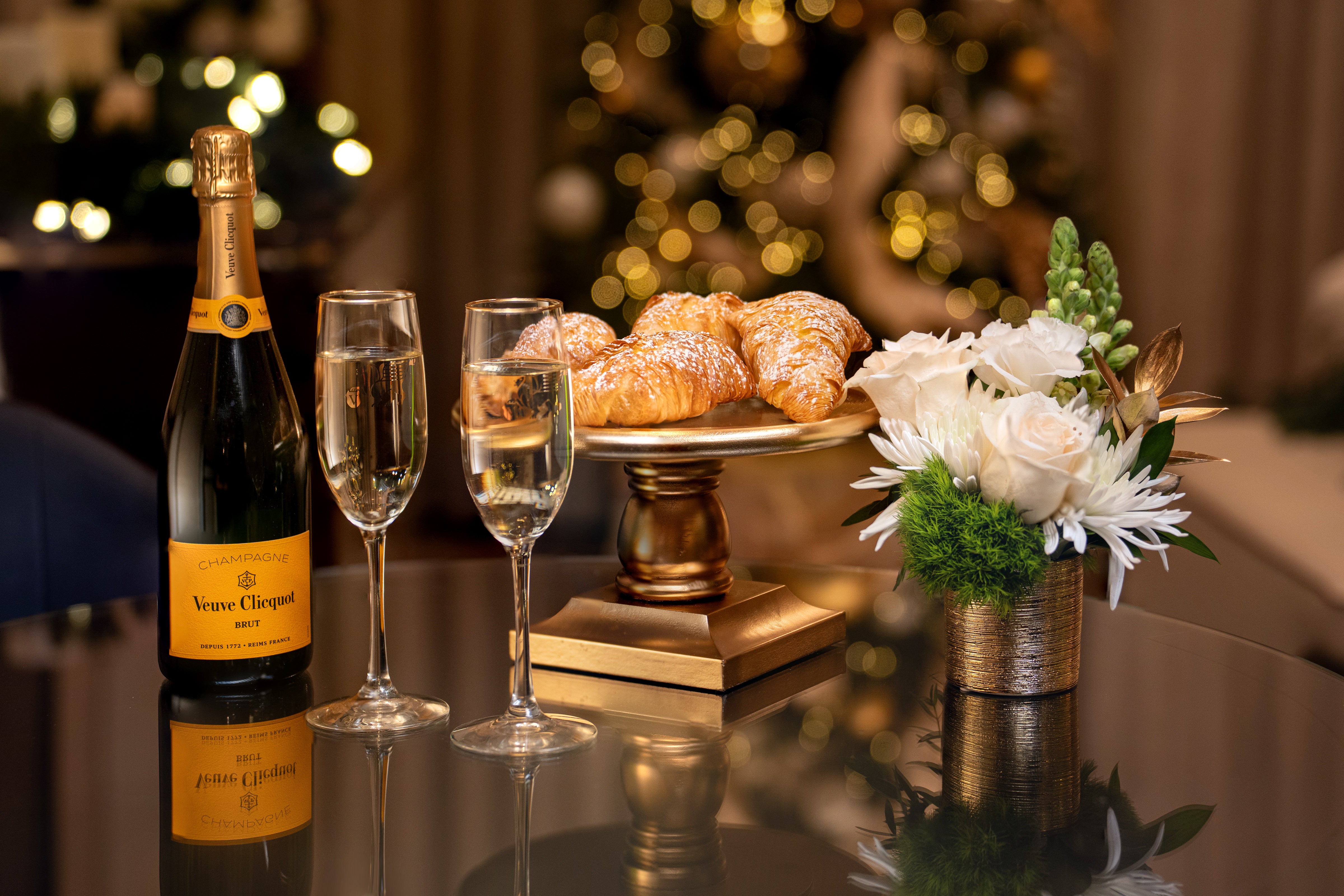 1 750ml Veuve Clicquot champagne with 2 flutes on ice