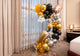 • (2) Clusters of assorted size helium filled balloons in black, silver and gold. Latex balloons guaranteed to last 10 hours after inflated.