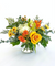 Approx. 14”T X 14”W  contains yellow and orange roses, green orchids, yellow button mums, coffee bean, assorted foliage. Designed in a clear glass vase. Long lasting and light fragrance.