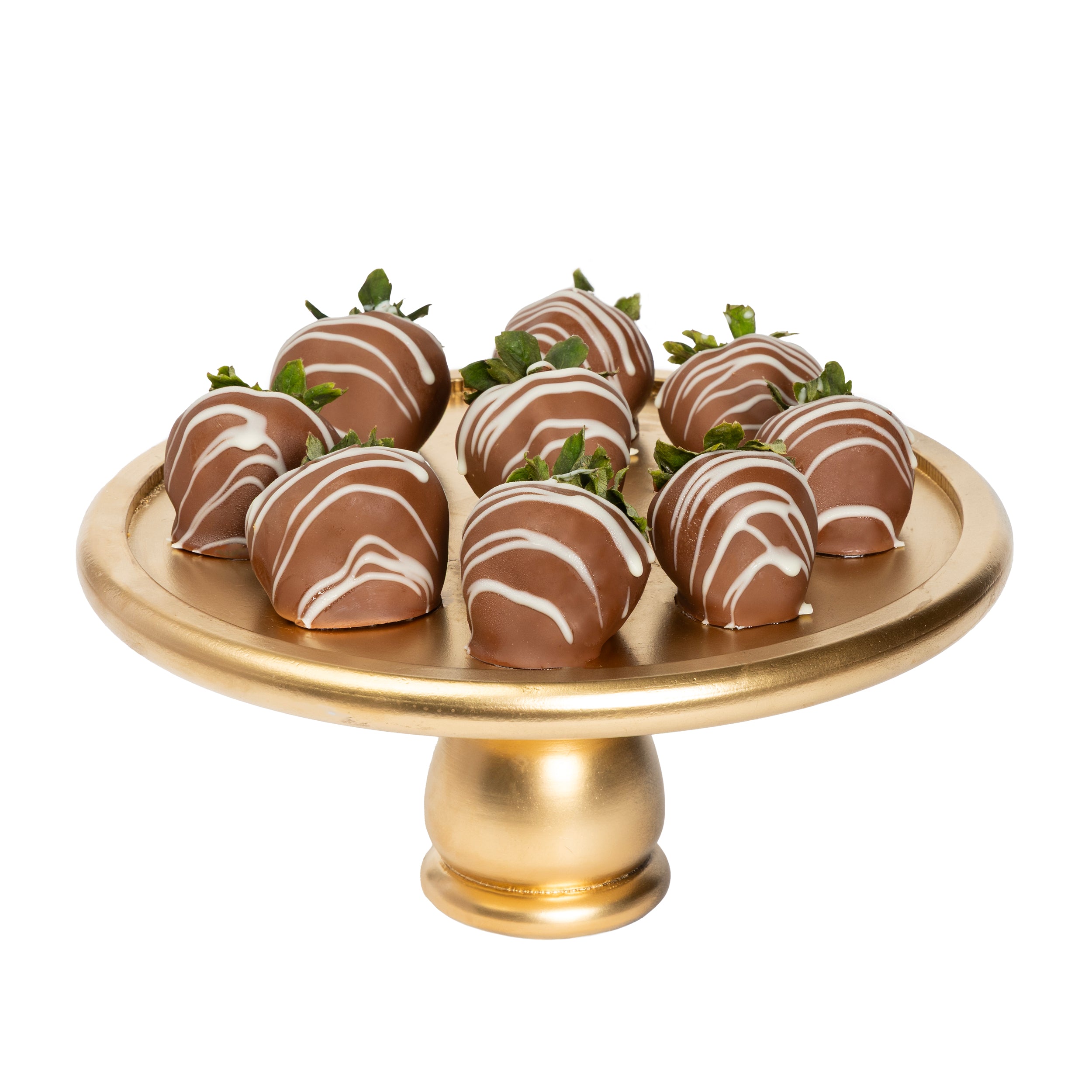 Approximately 1.0LB (6 -8) strawberries depending on size of fresh long-stem strawberries dipped in a mix of the finest milk chocolate and drizzled with white chocolate. Delivered to your suite in a Famous Carlos Bakery box. *Cake stand not included   * Please note that the...